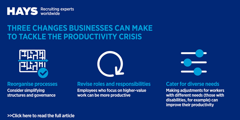 Pressure on productivity has seen many businesses try to squeeze more output per hour – but according to recruiting experts Hays, now is the time to explore other approaches.